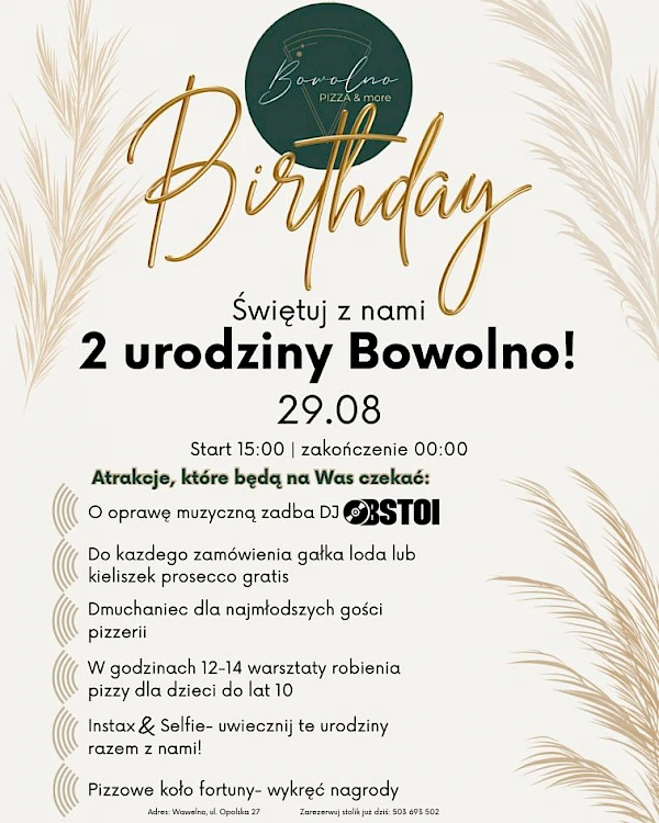 Jesteśmy nową pizzerią otwartą na mapie Opolszczyzny. Nasza pizza jest opalana żywym ogniem w jednym z 900 piecy CALABRIA w Polsce, nasze ciasto wyrasta 24 godziny, a składniki są Włoskie. Ponadto napijecie się u nas lanego piwa, Prosecco, a także domowej lemoniady.