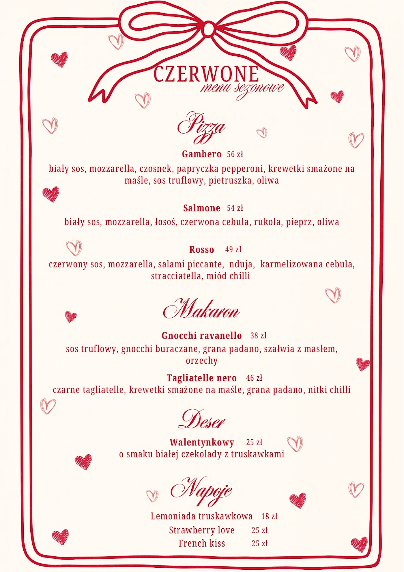 Jesteśmy nową pizzerią otwartą na mapie Opolszczyzny. Nasza pizza jest opalana żywym ogniem w jednym z 900 piecy CALABRIA w Polsce, nasze ciasto wyrasta 24 godziny, a składniki są Włoskie. Ponadto napijecie się u nas lanego piwa, Prosecco, a także domowej lemoniady.