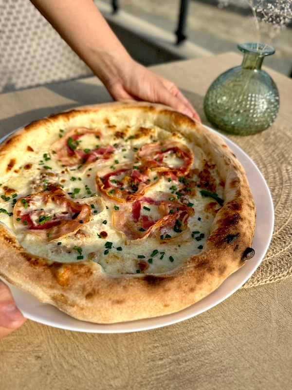 Jesteśmy nową pizzerią otwartą na mapie Opolszczyzny. Nasza pizza jest opalana żywym ogniem w jednym z 900 piecy CALABRIA w Polsce, nasze ciasto wyrasta 24 godziny, a składniki są Włoskie. Ponadto napijecie się u nas lanego piwa, Prosecco, a także domowej lemoniady.